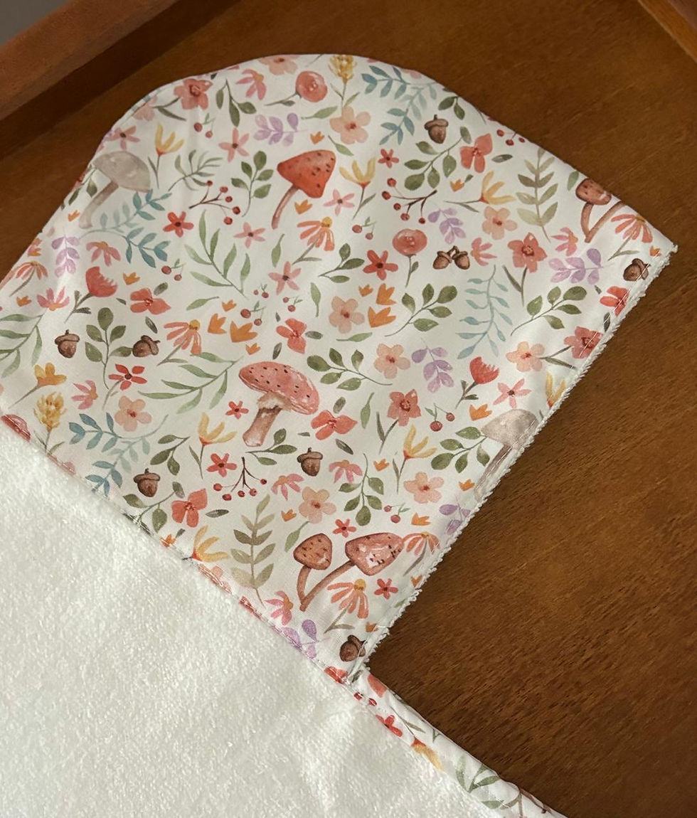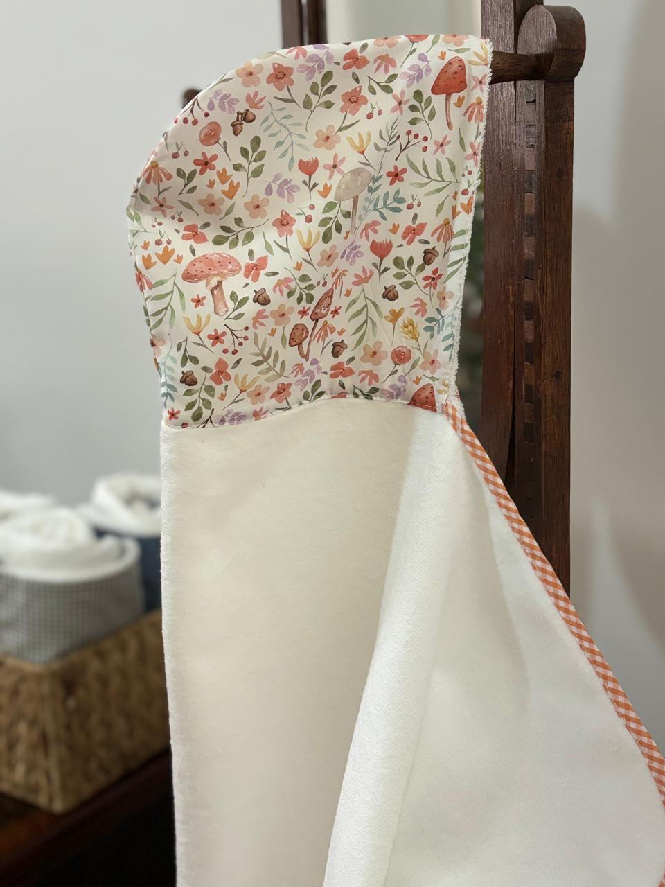 Tecido atoalhado da marca Döhler e tricoline, ambos 100% algodão. Possui um lado aveludado e o outro felpudo, super macia, ideal para a pele delicada do bebê, oferecendo uma ótima absorção.